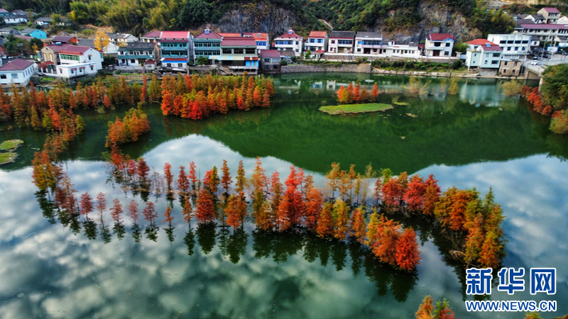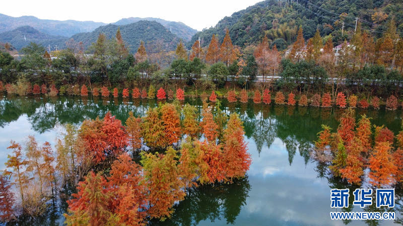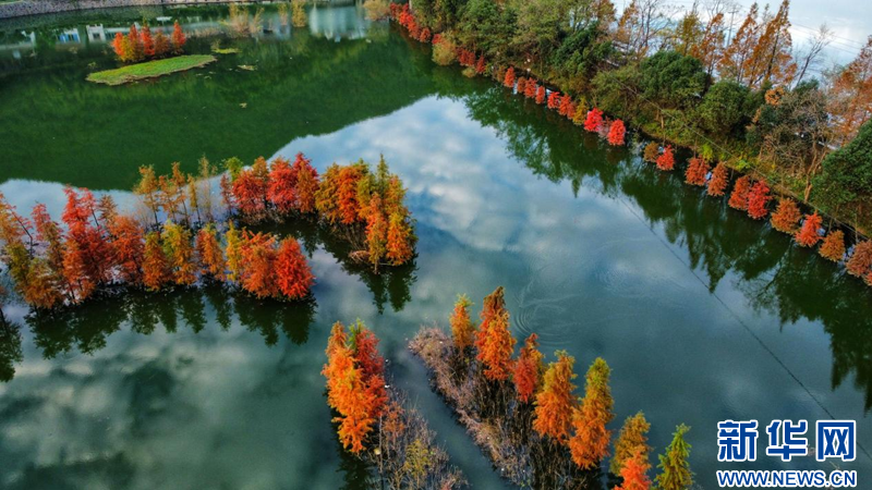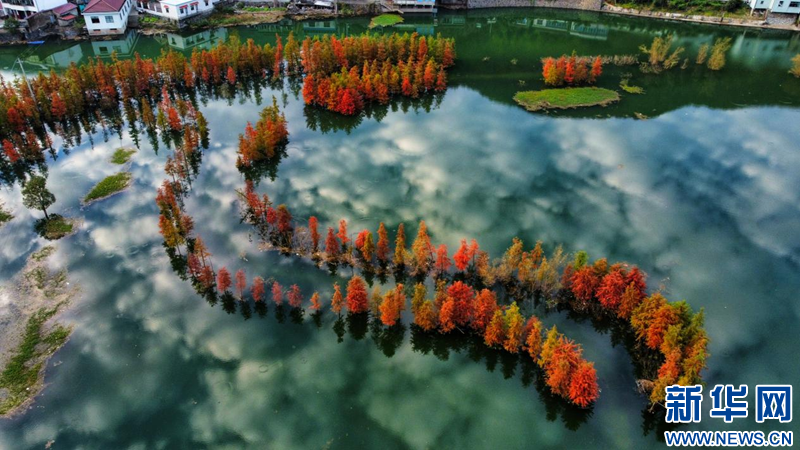 近日,在浙江省余姚市陸埠鎮(zhèn)袁馬村一處濕地公園里,成片的池杉林“出圈”,在藍(lán)天白云和湖水映襯下顯得分外美麗。新華網(wǎng)發(fā) 吳大慶攝