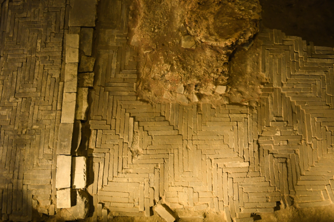 南宋德壽宮遺址博物館館內(nèi)的南宋青磚墁成的地面(11月14日攝)。新華社記者 翁忻旸 攝
