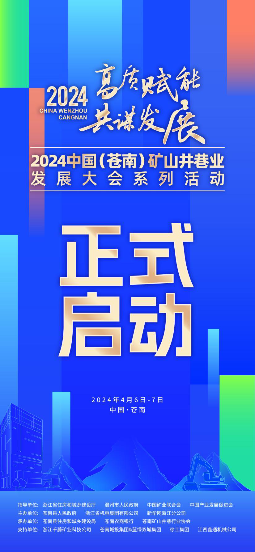 4月6日-7日,2024中国(苍南)矿山井巷业发展大会系列活动将在浙江省温州市苍南县灵溪镇举办。届时将开展2024中国(苍南)矿山机械设备展览会、矿山井巷业高质量发展大会、矿山井巷业高质量发展政企沙龙交流会等活动。