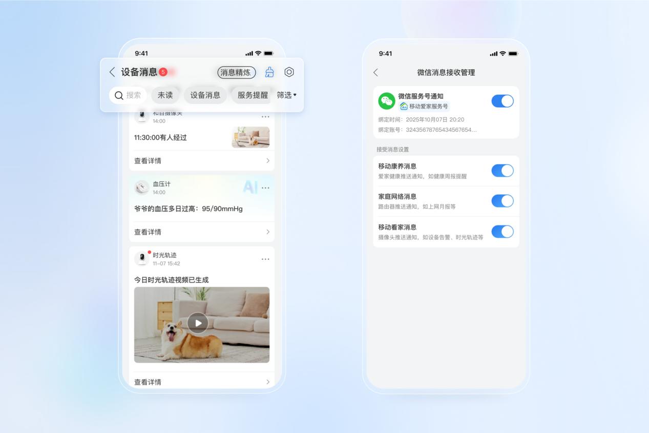 新版本支持用户通过微信接收家庭设备状态提醒与安全通知,实现跨平台消息同步,让关心不再遗漏,牵挂随时在线。