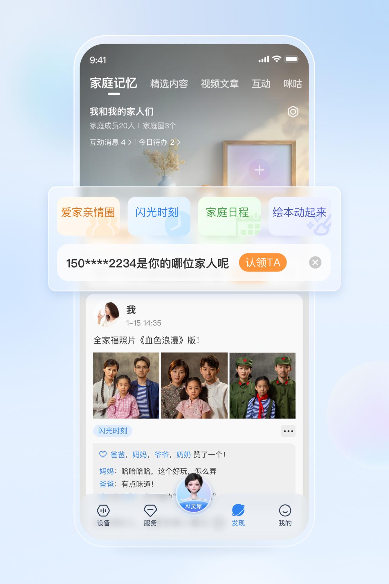 系统自动聚合家庭相册、视频与互动内容,形成专属的“家庭记忆流”,帮助用户记录与回放生活中的珍贵瞬间,强化家庭成员间的情感连接。